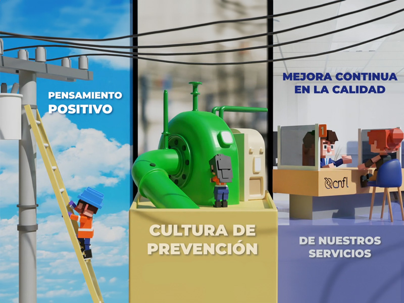 En este proyecto para la Compañía Nacional de Fuerza y Luz, se requería crear una animación que fuera atractiva para un curso sobre la gestión integral de riesgo, de modo que fuera más animado y entretenido con recursos animados para mostrar la información de una manera más visual.